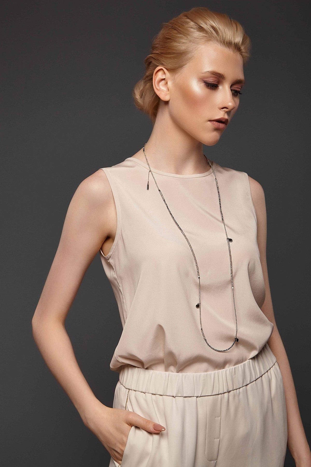 Luxurious and noble, restrained and bright at the same time, will be to the taste of even the most demanding individuals! A dense bundle of shining strands of crystal of dark gray color, magically attracts the eyes. Leather trim and magnetic lock, extremely comfortable and convenient to wear.